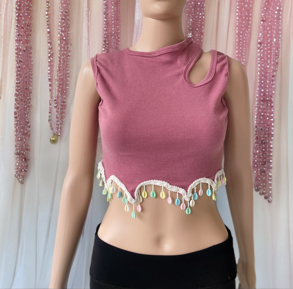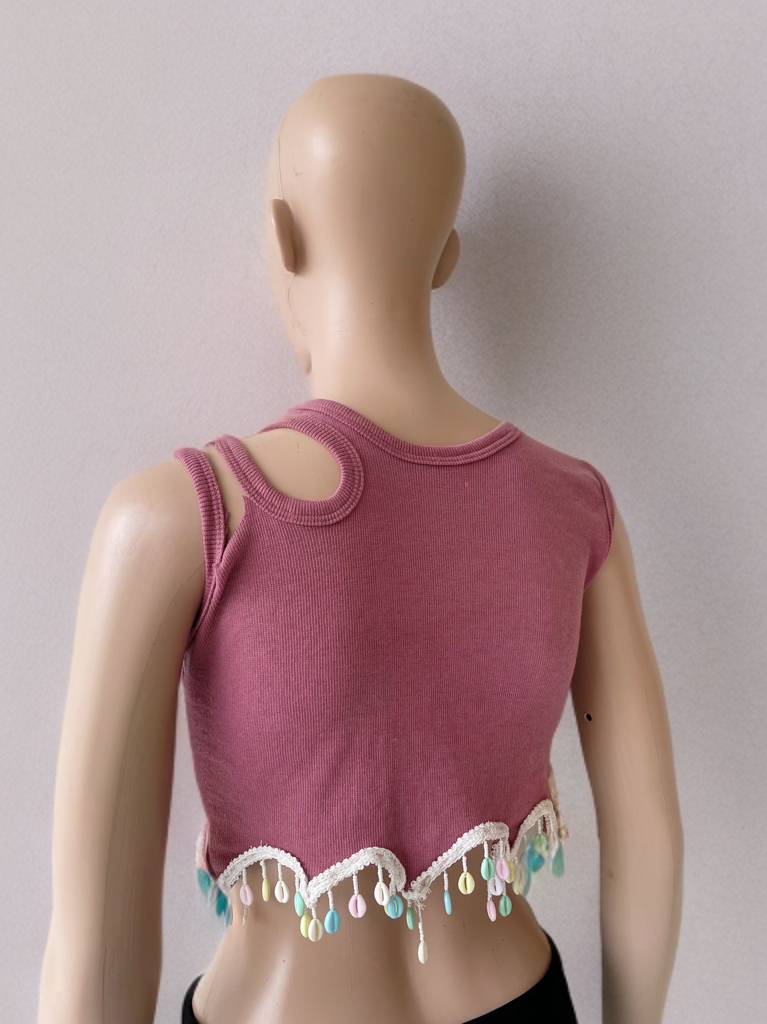 Be the first to review “Pink Shells Sleeves Cut-Out Crop Top”